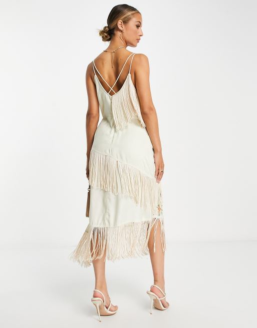 Cream fringe clearance dress
