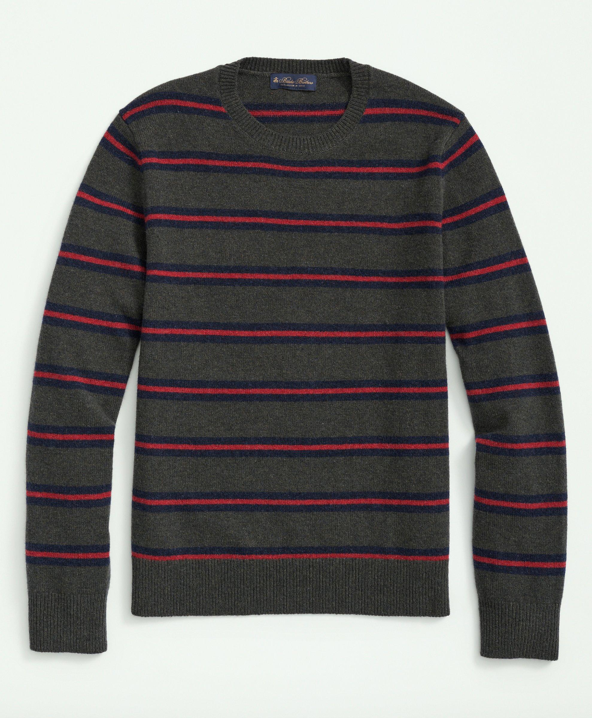 Striped wool intarsia sweater with clearance appliqués