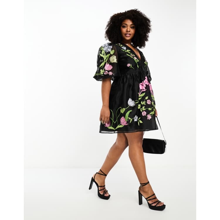 Asos black clearance floral embroidered dress
