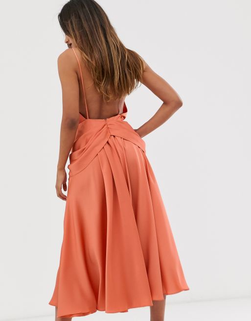 Asos design midi strappy cami dress clearance with knot front plunge in satin